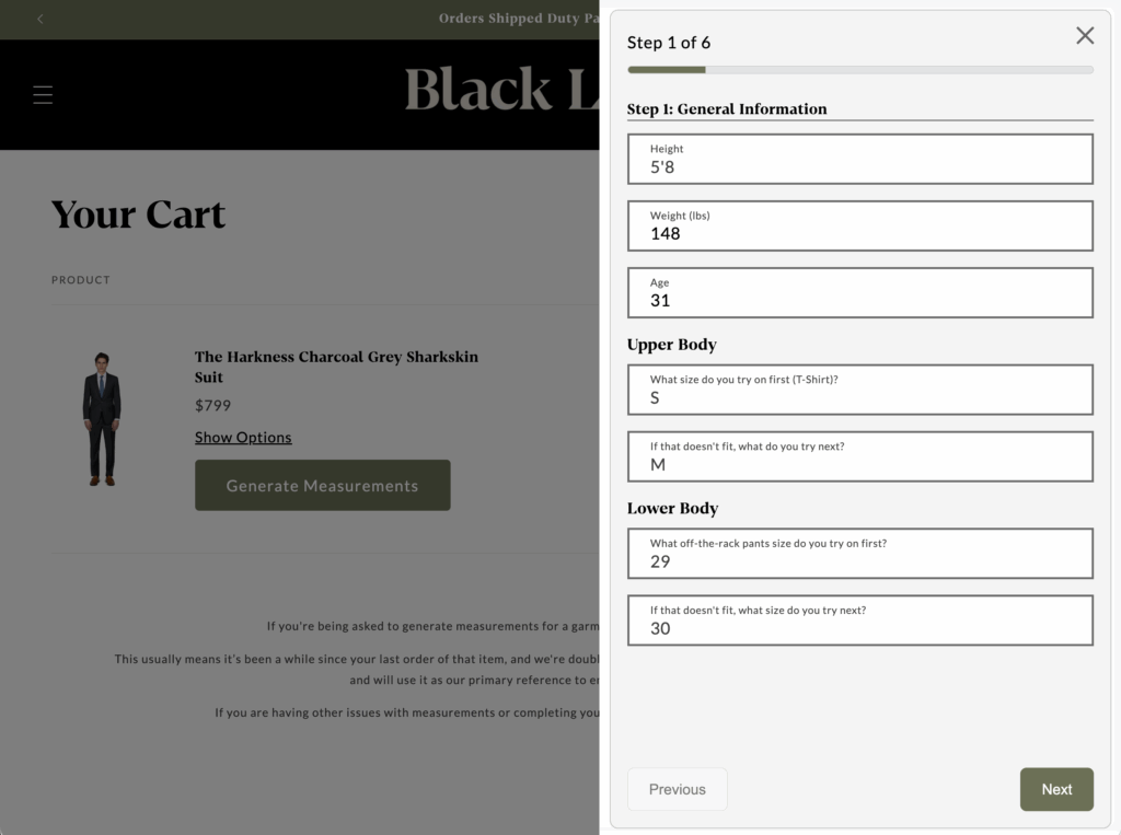 Next, Black Lapel prompted me to generate my measurements through another short questionnaire.